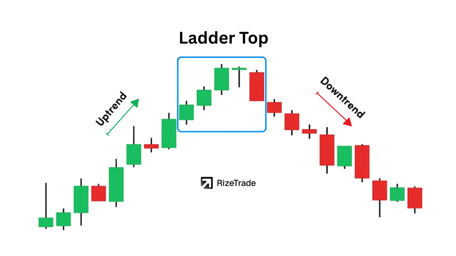 📉 The Ladder Top is a five-candle bearish reversal pattern signaling potential trend exhaustion.