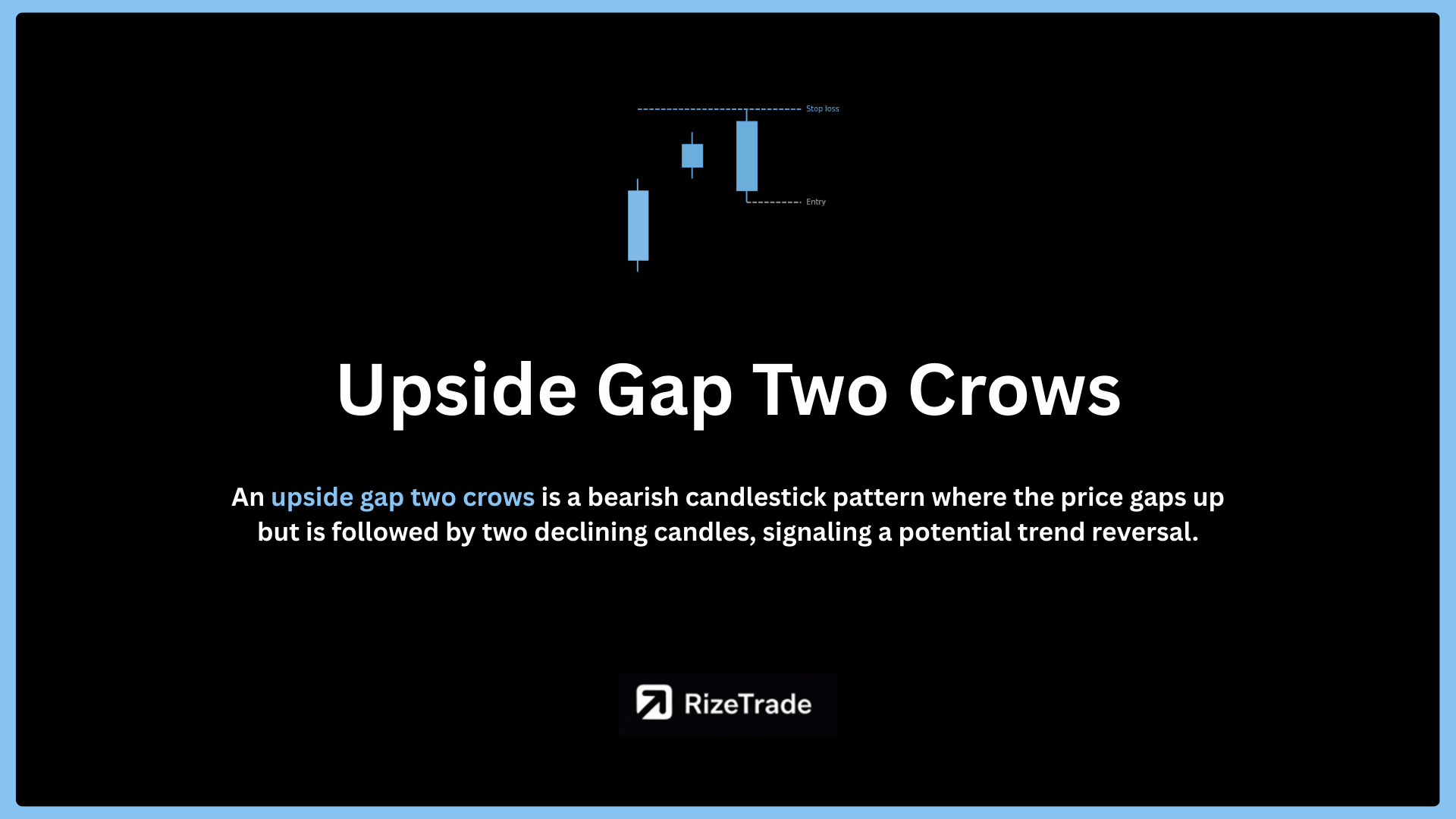 The Upside Gap Two Crows is a bearish reversal pattern that shows up in an uptrend. It’s a three-candle sequence that often flags buyer exhaustion and early seller control.