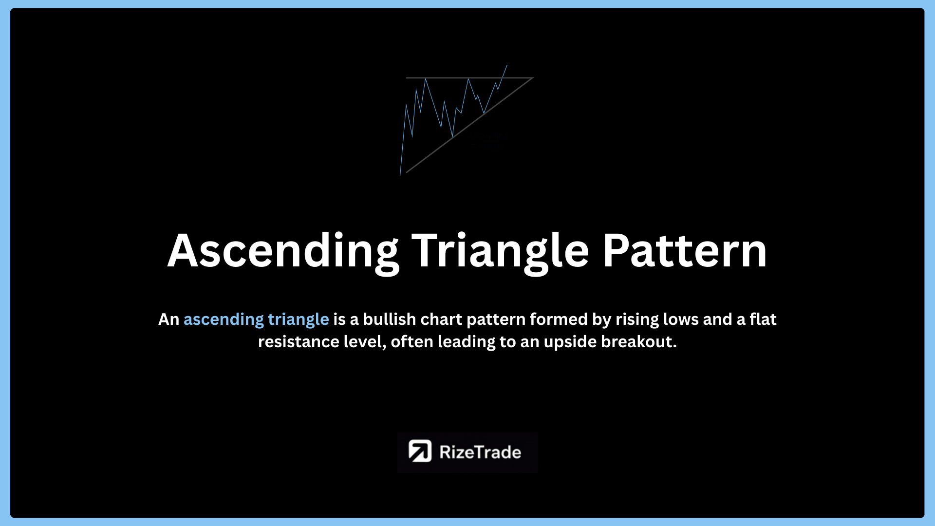 An ascending triangle is a bullish chart pattern built around two simple lines: a flat resistance level that keeps rejecting price, and a rising support trendline made from higher lows.