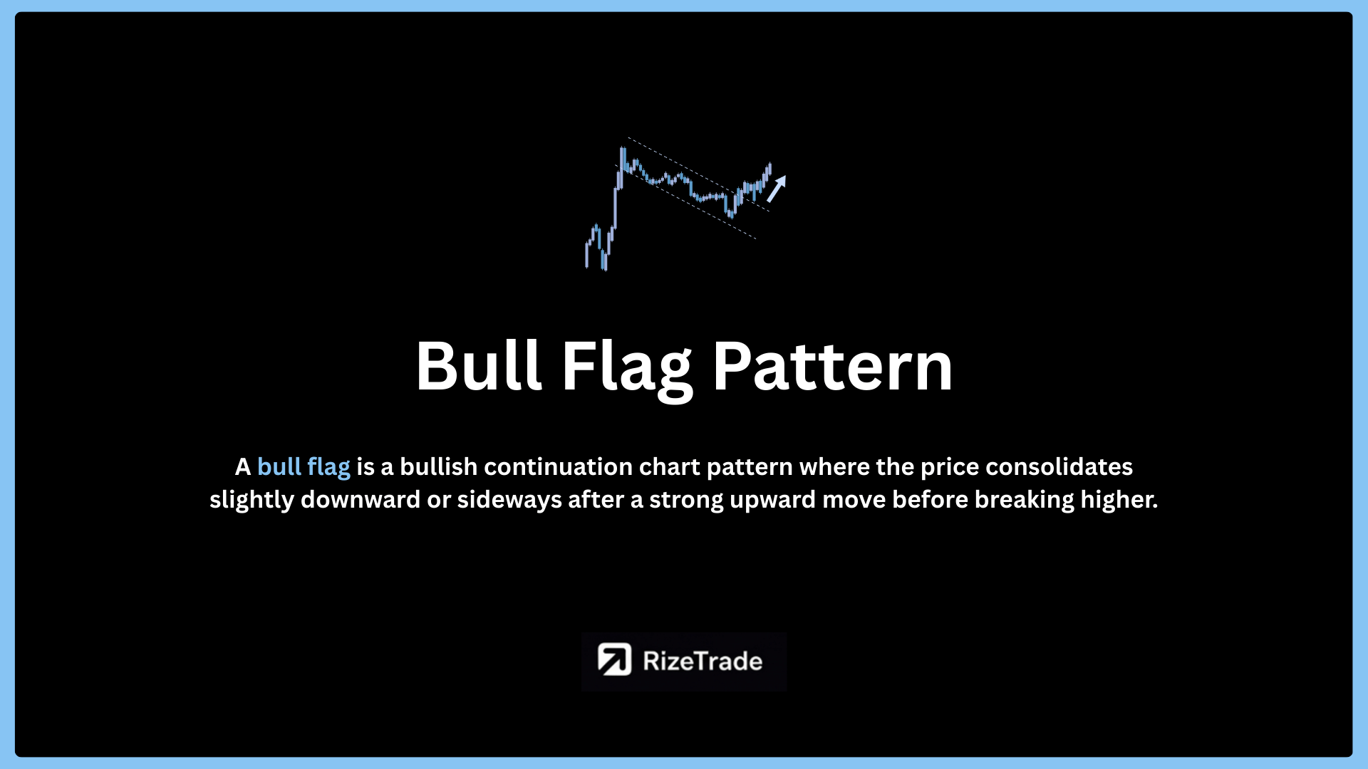 The bullish flag chart pattern is a continuation pattern. It’s basically the market catching its breath in an uptrend, then pushing higher again. You’ll usually see a sharp impulsive rally (the “flagpole”), followed by a tight consolidation that drifts slightly down or chops sideways (the “flag”).