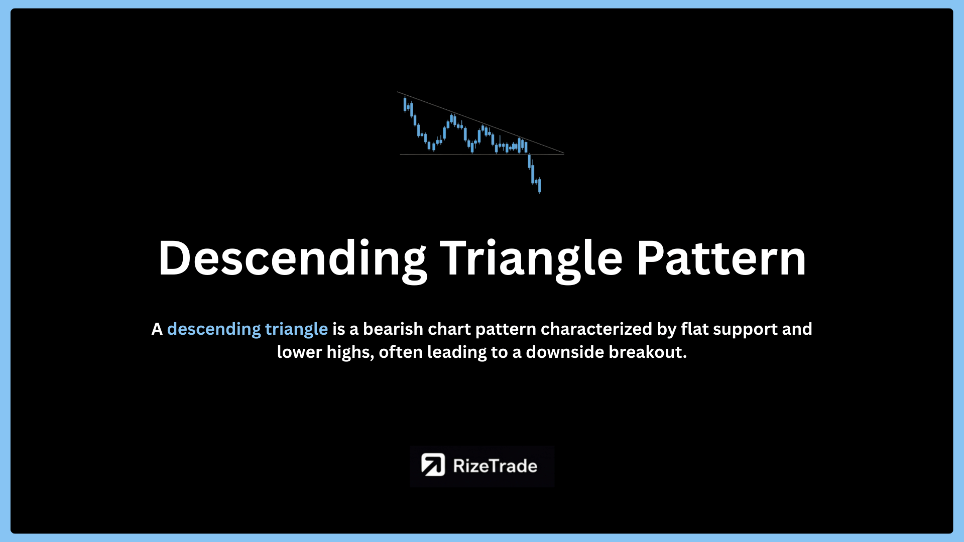 The descending triangle pattern is a bearish continuation setup. You’ll usually see a flat support line holding the lows, while a descending resistance trendline connects a series of lower highs.