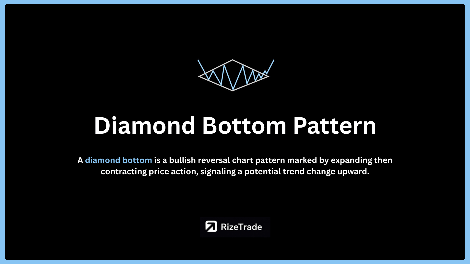 Diamond Bottom pattern is a bullish reversal chart formation that signals the end of a downtrend and the beginning of a potential upward move.