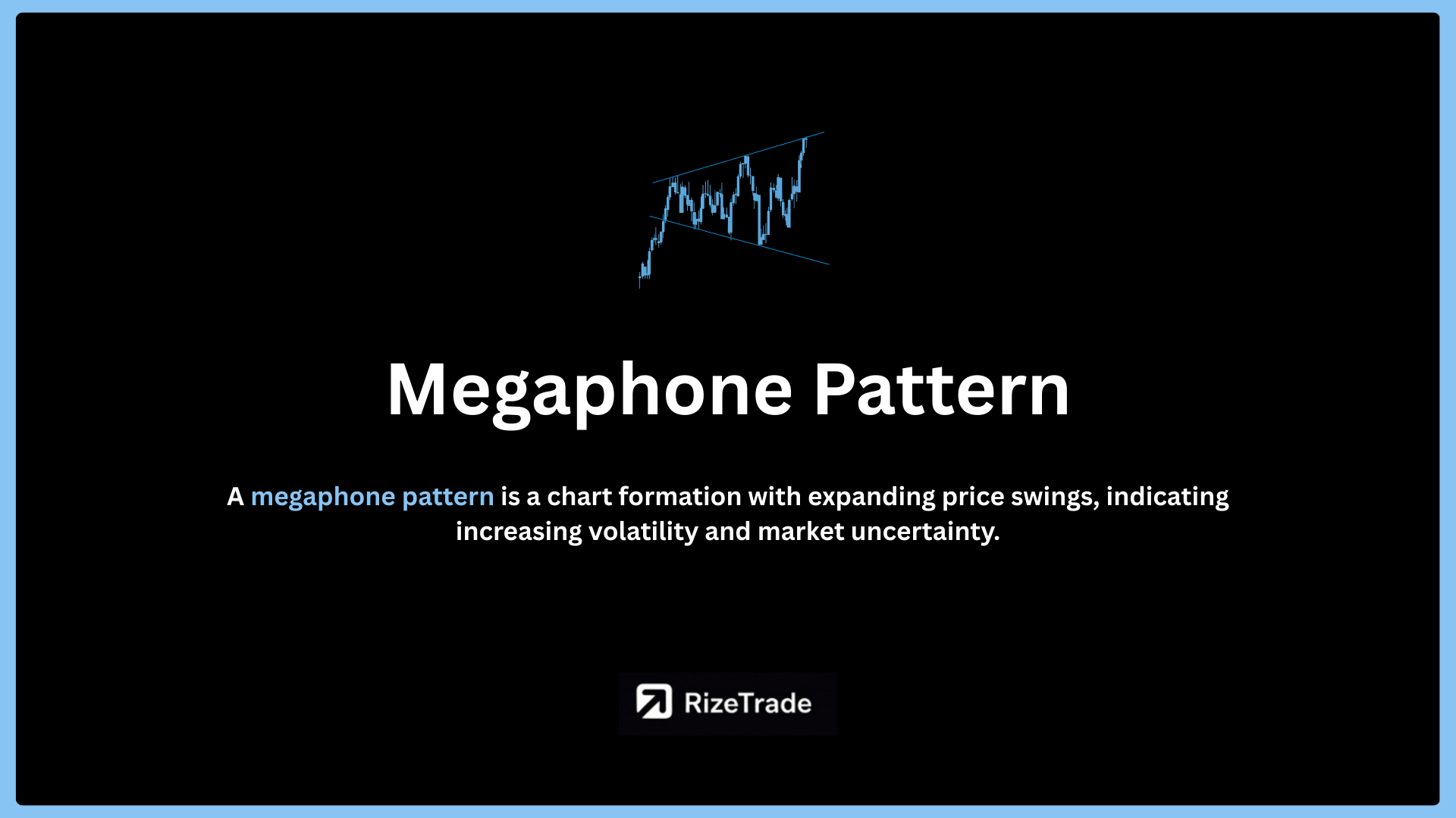 The megaphone pattern is a broadening formation with diverging trendlines, higher highs, and lower lows. It signals expanding volatility and a market that can’t settle on direction.