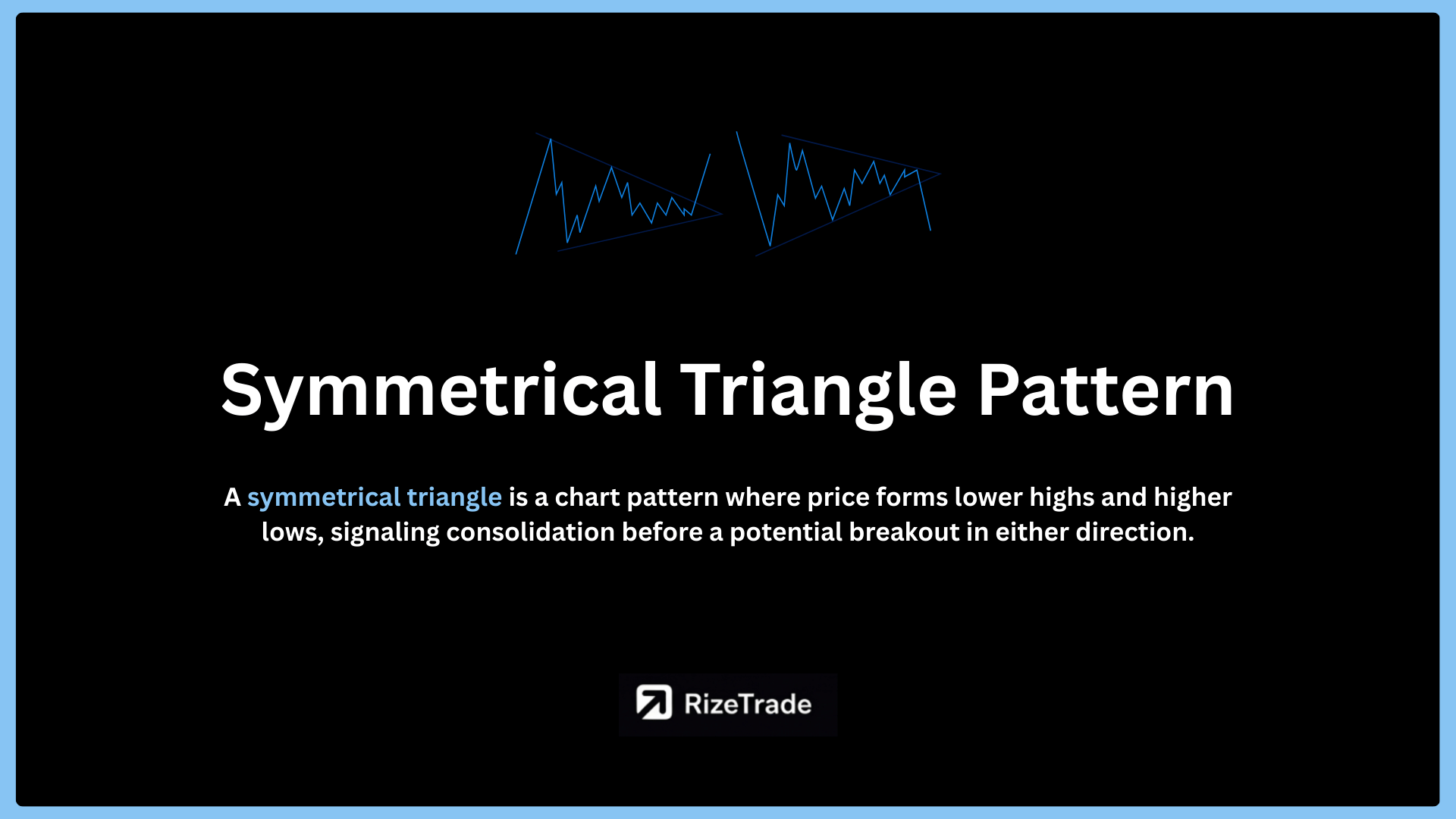 A symmetrical triangle is a consolidation pattern where price gets squeezed between two converging trendlines: falling resistance and rising support. It’s basically the market pausing—buyers and sellers are in a tug-of-war—until price finally breaks out and picks a direction.
