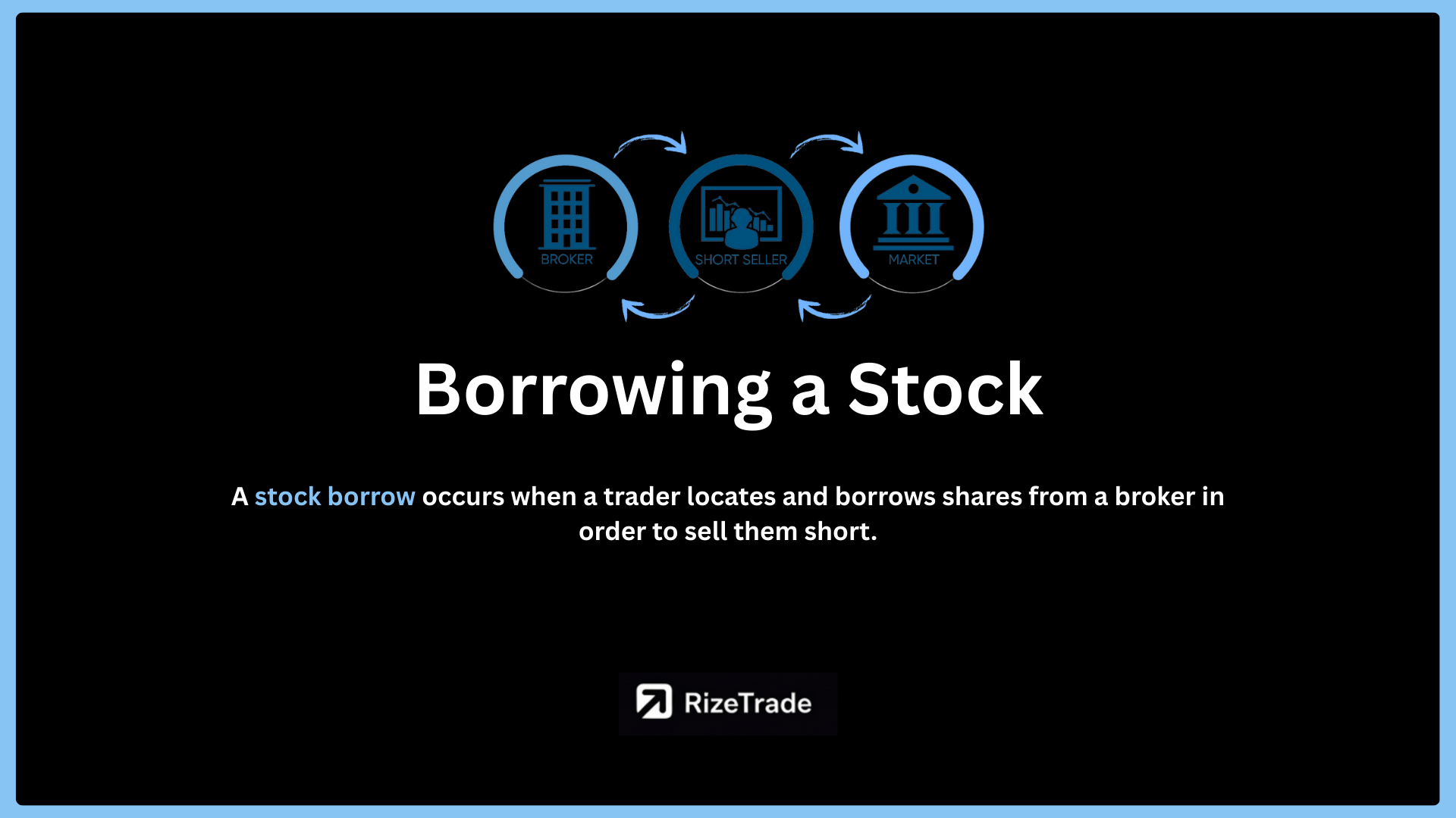 Stock borrowing is when you temporarily borrow shares from a stock lender (usually routed through your broker) so you can place a short sale order without owning the stock.