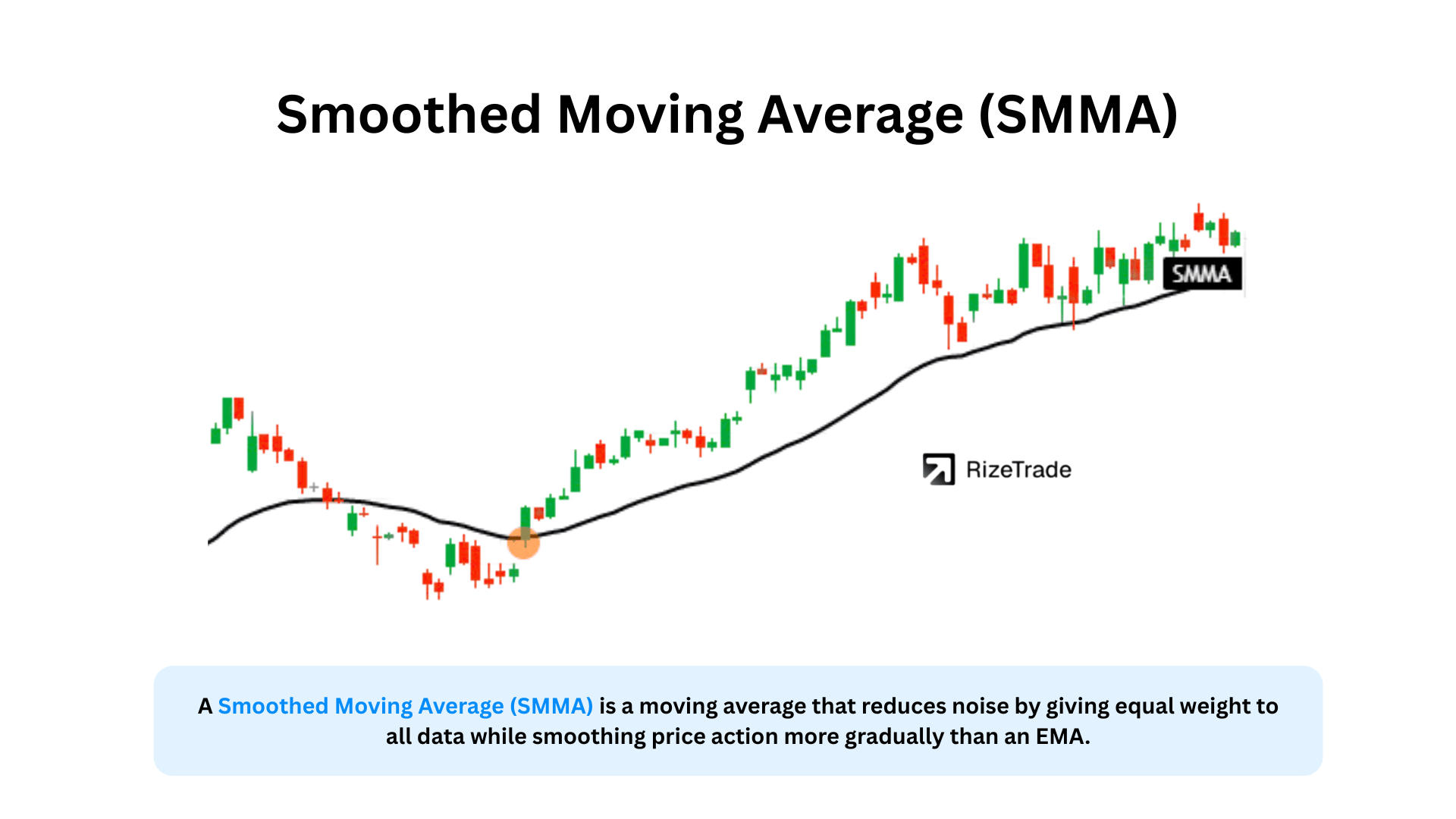The Smoothed Moving Average (SMMA) is a moving average that applies equal weight to all historical data while giving slightly more emphasis to recent prices, creating ultra-smooth trend lines.