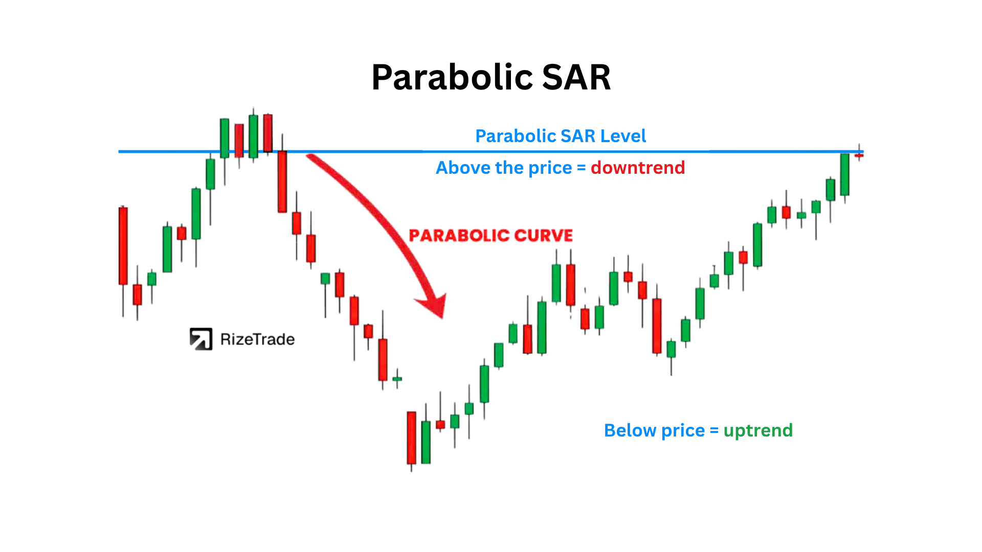 Parabolic SAR is a trend-following indicator placing dots above or below price to signal potential reversals.