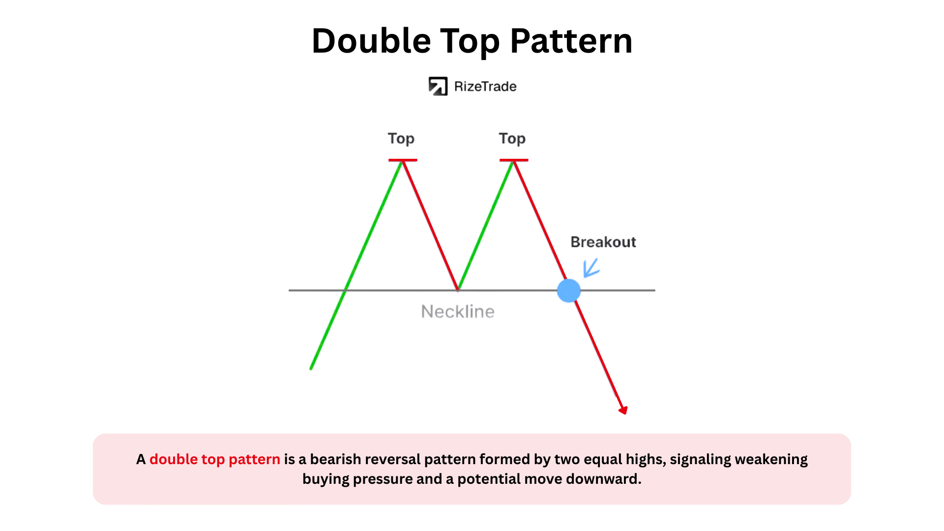 📉 The double top is a bearish reversal pattern signaling potential trend exhaustion.