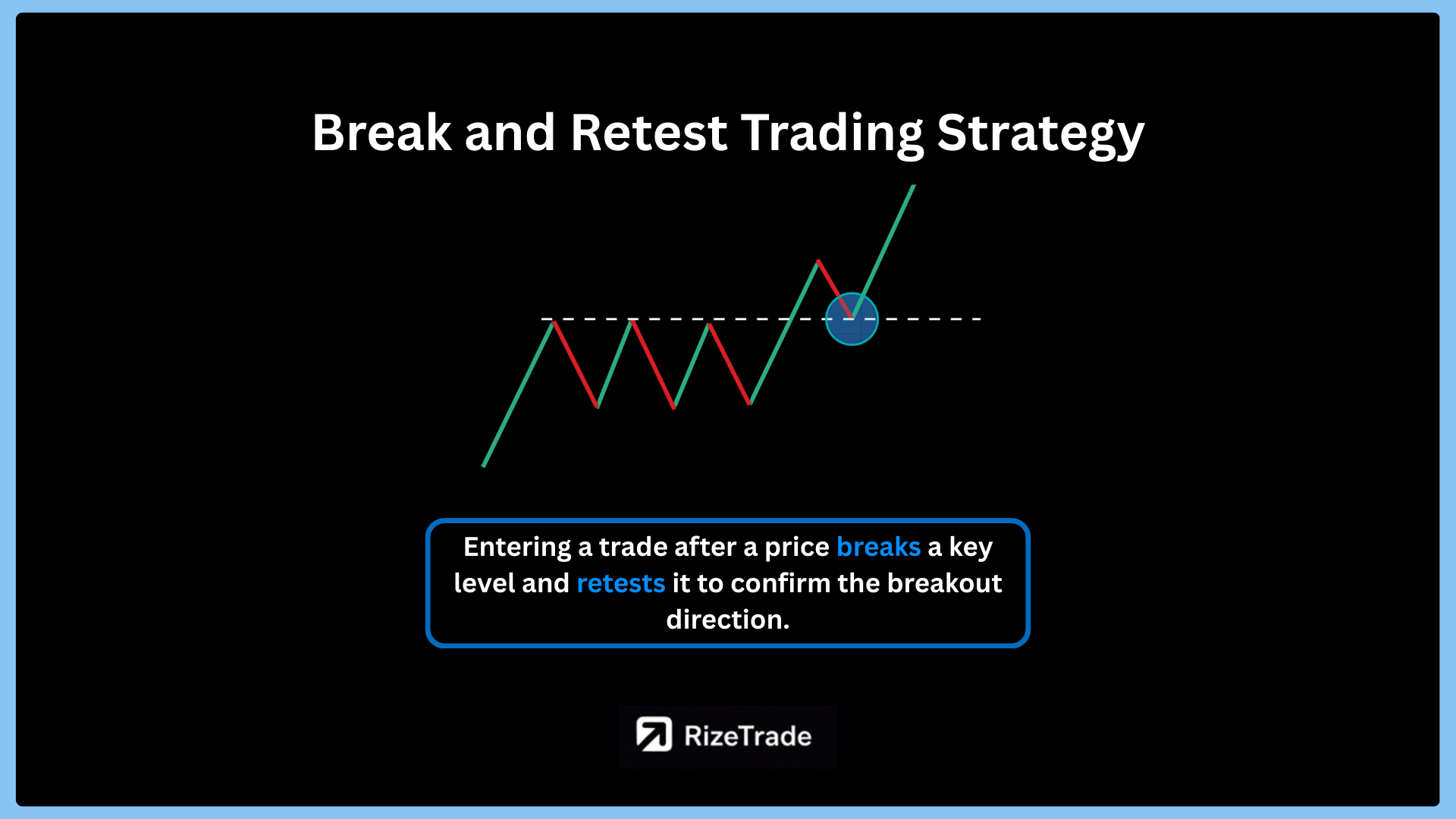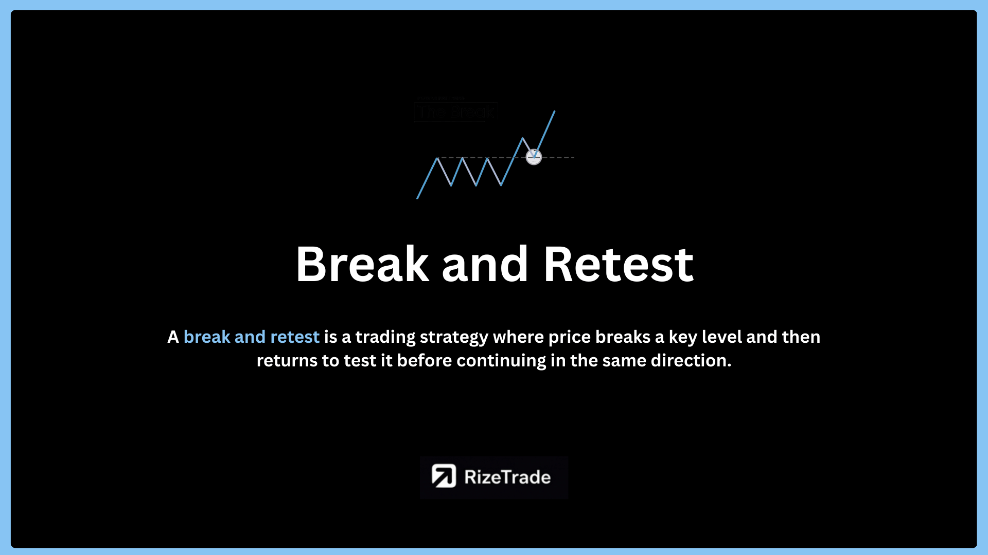 The break and retest strategy is straightforward: mark a clean support or resistance zone, wait for the price to break it with real intent, then look for an entry on the pullback when that same zone gets tested again. The edge is the “prove it” part.